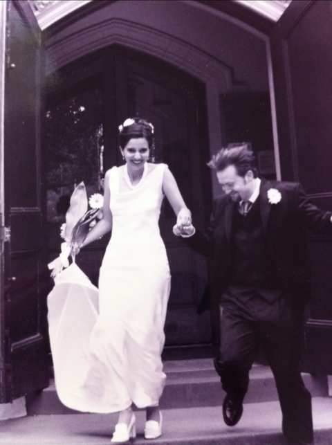 This photo is of us running out of the church after we’d said our ‘I dos’. Throughout the brief ceremony, various friends performed gorgeous music including ‘One Hand, One Heart’ and ‘I Have a Love’ from Westside Story and the stunning ‘The Wedding‘ by Abdullah Ibrahim – a song that can take me back to each and every step I took as, on my father’s arm, I walked down the aisle to Aaron.