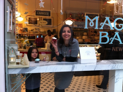 On a cold Tuesday night in NYC, we donned our coats, hats and scarves, walked the four blocks to Magnolia Bakery in Bloomingdales and bought cupcakes. And we weren’t cold anymore.