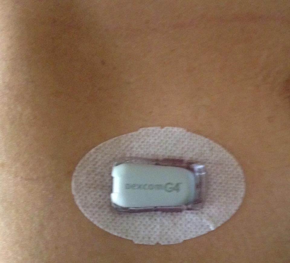 The Dexcom G4 attached sitting pretty on my abdomen.