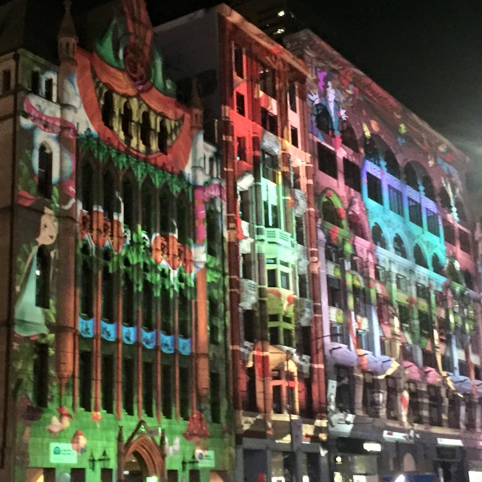 We headed into Hamer Hall and watched an incredible show of light, sound and movement on the empty stage. And then walked along Flinders Street, the beautiful old buildings lit up like magic. We wandered through a Melbourne laneway, lay down on the cobblestones and watched the projection on the roof of a building. And we heard more music and saw more movement.