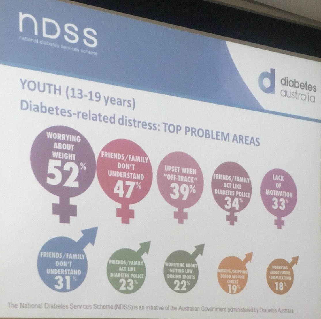 The report (which can be found here) shows that a quarter of young people living with type 1 diabetes experience moderate to severe depressive or anxiety symptoms. This image shows the top problem areas for girls and boys.