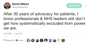 Fair point. And reading David Gilbert’s Twitter feed and skimming through his blog, his commitment to patient-led healthcare is strong. He has a lot of experience fighting for the rights of healthcare users to be true partners in the system.