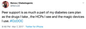 I can’t begin to count the number of times I’ve spoken or written about how much I need my friends living with diabetes to help support my daily life with diabetes, or how they are an essential part of my diabetes management tool kit. In fact, I use this tweet so frequently when I am taking about diabetes peer support because it perfectly illustrates just how essential it is to me.