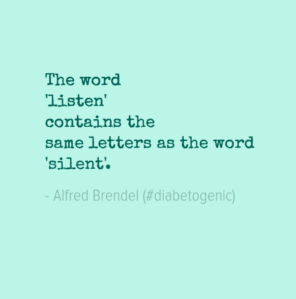 I have type 1 diabetes. Although my endocrinologist may not, she has an uncanny ability to pinpoint the exact information I am looking for (often before I’ve asked). She knows about the dark side of diabetes and offers help working through it. And she listens, listens, listens.