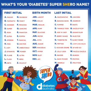 Sure, it’s just a bit of fun, but lots of people have had a giggle as they worked out their name using the Diabetes Australia SuperHEro Name Generator.