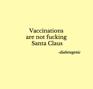 After I had my flu shot last week, I foolishly got into an argument with a couple of people who told me they ‘don’t belive in vaccinations’, to which I replied ‘You don’t get to ‘not believe’ in vaccinations. They are real. Vaccinations are not fucking Santa Claus’. Then someone suggested I should get that on a t-shirt, which I just might do. In the meantime. I made a poster, which you should feel free to share with fools.