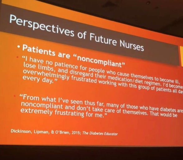 This came from student nurses. Just think about that. Students who were training to be HCPs who would inevitably be working with people with diabetes. A I wrote at the time: