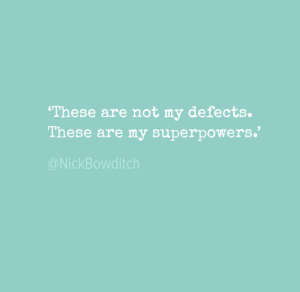 By turning our assumptions on their head and reframing how he lives with mental health conditions shows us that Nick is not ‘just coping’, he’s living. His words were: ‘These are not my defects. These are my superpowers.’ And it challenges us to reconsider our preconceived ideas. I know that those of us who speak about diabetes often challenge what others think.