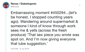 These remain two of the most read posts on Diabetogenic. Both of them resulted in a lot of messages from a lot of women – most of whom I didn’t know – saying that for years they had searched for information about how diabetes can impact on their sexual health…and had found very little. They also said it was rarely, if ever, a topic their HCPs discussed or asked about. Conversations followed on online platforms too. Clearly – oh, so clearly – women with diabetes were searching not only for information about these issue, but to connect with other women would had similar experiences. The number of times I read the words ‘I thought I was the only one’ was somewhat heartbreaking.
