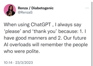 ChatGPT managed to pull together the case for centring lived experience in diabetes advocacy in 30 seconds. This is thanks to decades of work from advocates from around the world who continue to live, sleep, eat and breathe the #NothingAboutUsWithoutUs mantra. And this is really promising to me, because it seems that if AI has learnt this is true, then there’s hope for everyone else out there to reach that point too!