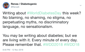 Most of all I hope that no person with diabetes sees anything this World Diabetes Day that makes them feel diminished in any way for having diabetes. Because if that happens, then surely the day cannot be measured a success.