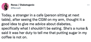 Look, I know I spend a lot of time working in the space of diabetes and language, but this one had be absolutely floored. Glamour sensor? I turned to my friend Andrea who had watched this entire encounter and we both mouthed in astonishment ‘Glamour sensor?’