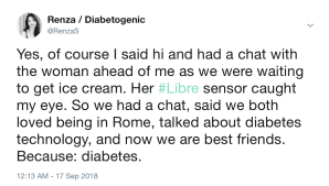The very idea that new devices being developed will require PWD to change their behaviour for said device to ‘cope’ with our real life is astonishing! This is, without a doubt, a step backwards in my mind. I know that my experience of Loop is that it has easily been able to adapt to my incredibly un-predictable life that includes far too much travel to different time zones, a varied and sometimes erratic diet and days where I have walked 30,000 steps with others where I’ve been horizontal for most of the day. I haven’t had to modify my behaviour in any way to please my Loop, and I’m not sure I would be so enamoured by it if I did.